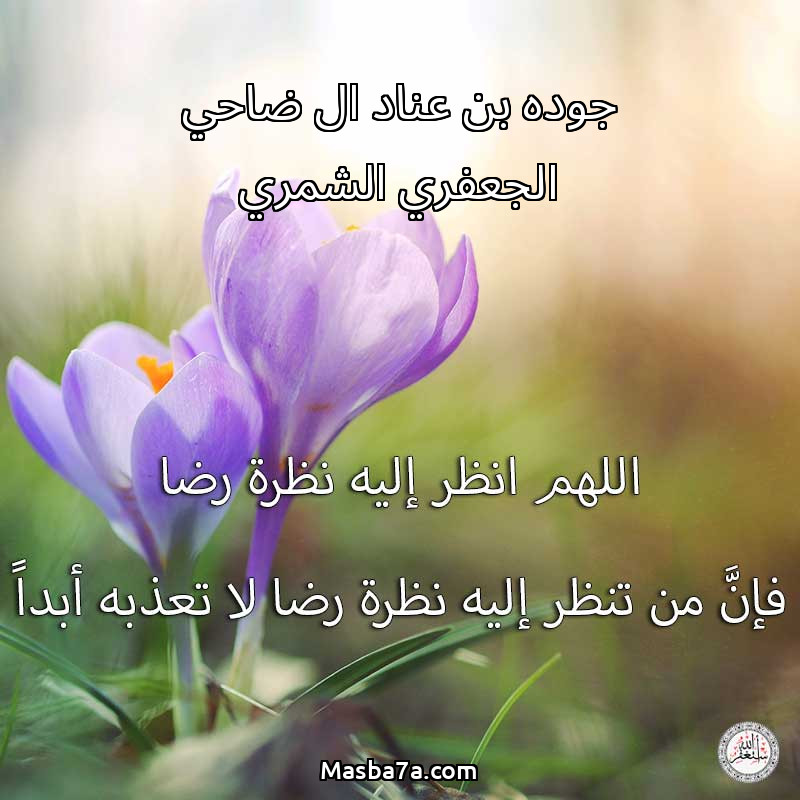 اللهم ارحم ( جوده بن عناد ال ضاحي الجعفري الشمري ) وانس وحشته واجمعنا به في جنتك ، اللهم ارحمه بقدر شوقنا له اللهم ارحمه واغفر له .