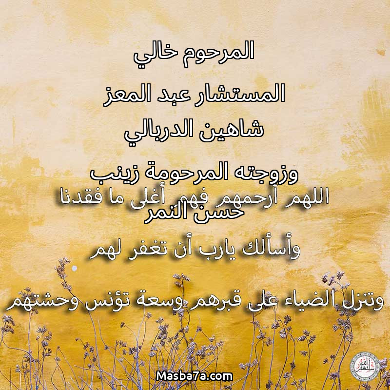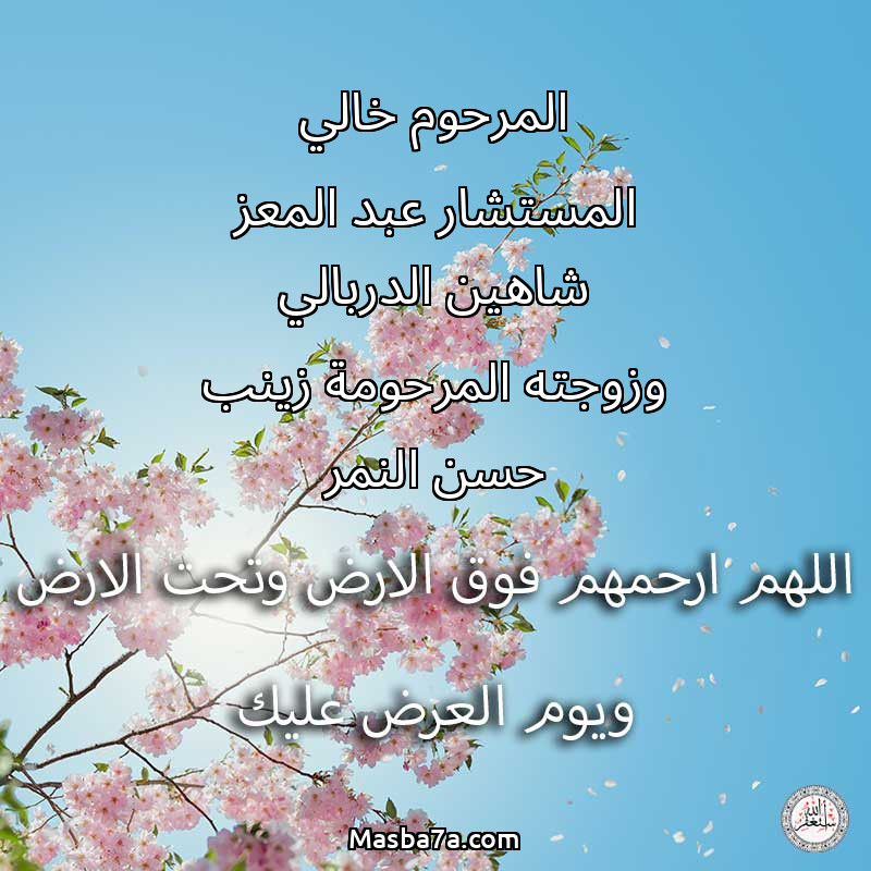 دعاء عن أرواح المرحومين المرحوم خالي المستشار عبد المعز شاهين الدربالي وزوجته المرحومة زينب حسن النمر