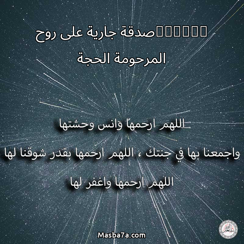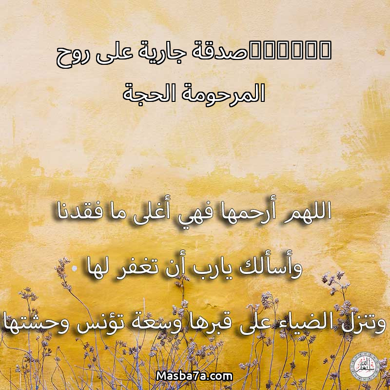 دعاء عن روح المرحومة ‏صدقة جارية على روح المرحومة الحجة / عائشة