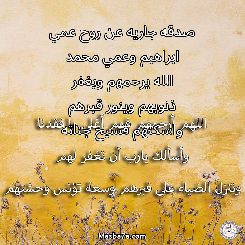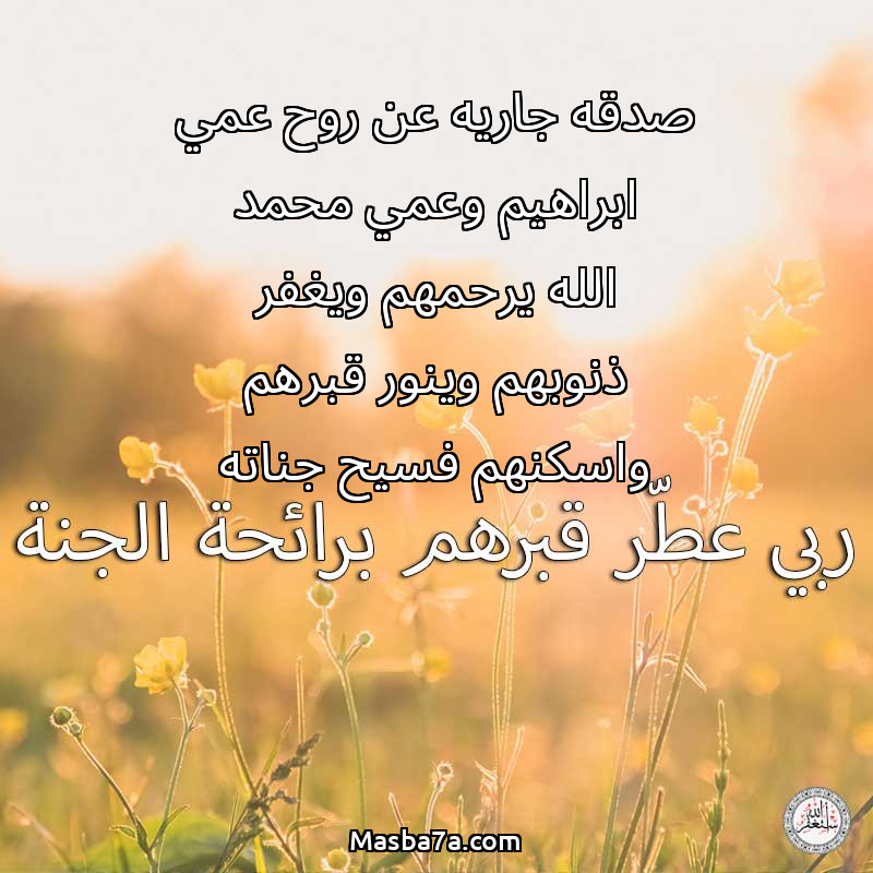 دعاء عن أرواح المرحومين صدقه جاريه عن روح عمي ابراهيم وعمي محمد الله يرحمهم ويغفر ذنوبهم وينور قبرهم واسكنهم فسيح جناته