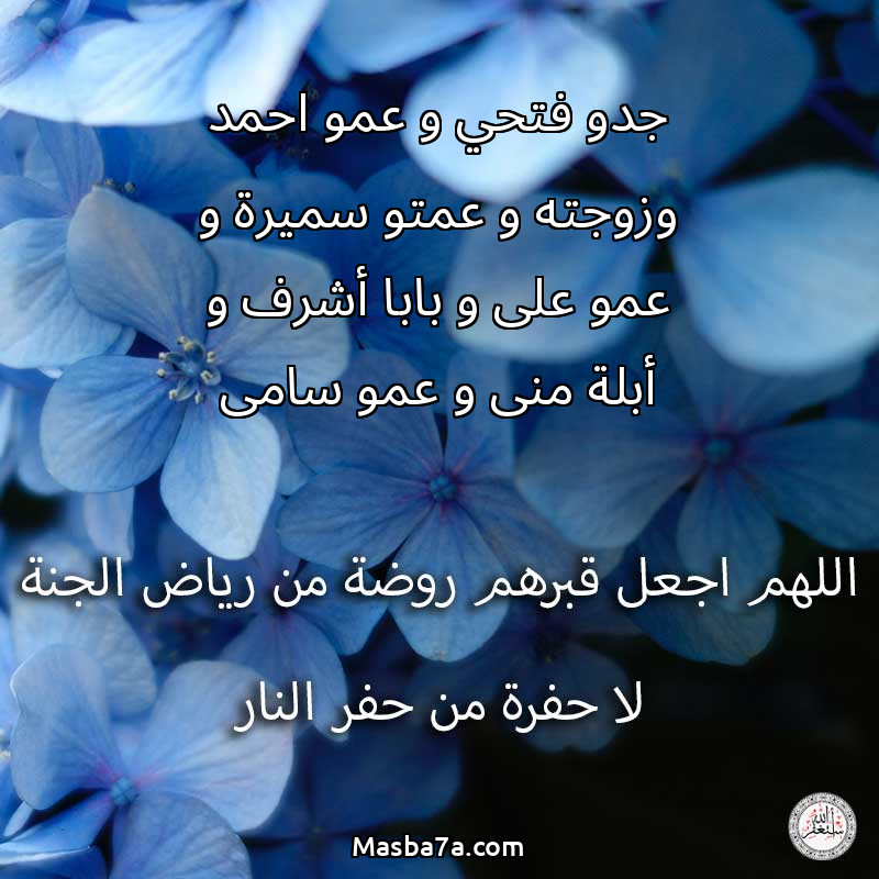 دعاء عن أرواح المرحومين جدو فتحي و عمو احمد وزوجته و عمتو سميرة و عمو على و بابا أشرف و أبلة منى و عمو سامى