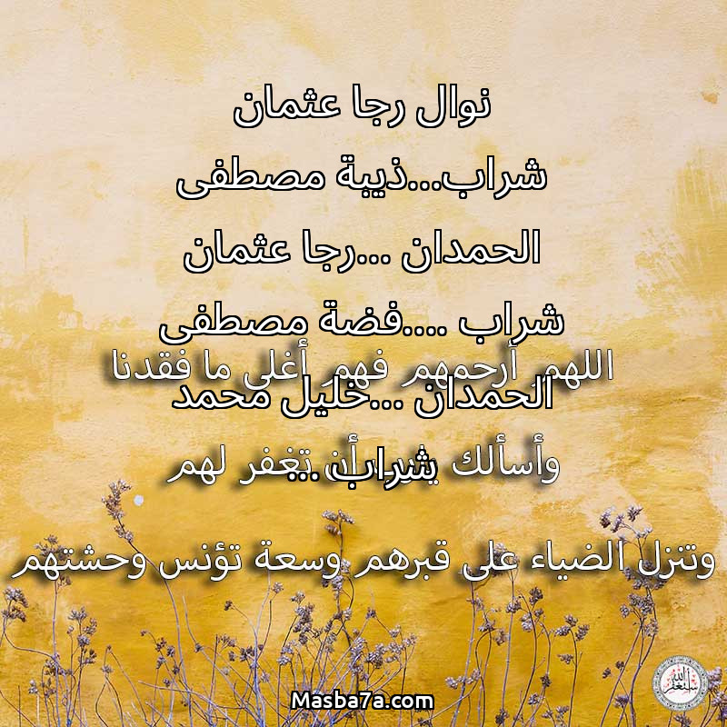 دعاء عن أرواح المرحومين نوال رجا عثمان شراب...ذيبة مصطفى الحمدان ...رجا عثمان شراب ....فضة مصطفى الحمدان ...خليل محمد شراب ...