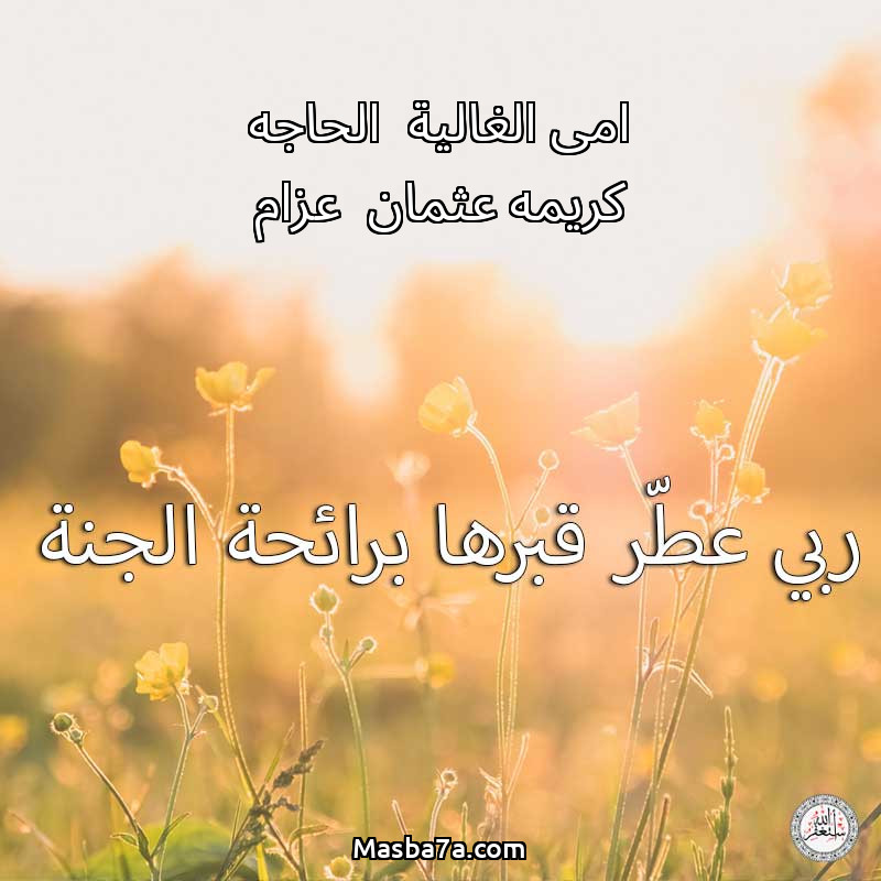 اللهم ارحم ( امى الغالية الحاجه كريمه عثمان عزام ) وانس وحشتها واجمعنا بها في جنتك ، اللهم ارحمها بقدر شوقنا لها اللهم ارحمها واغفر لها .