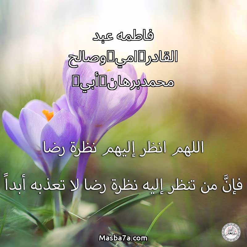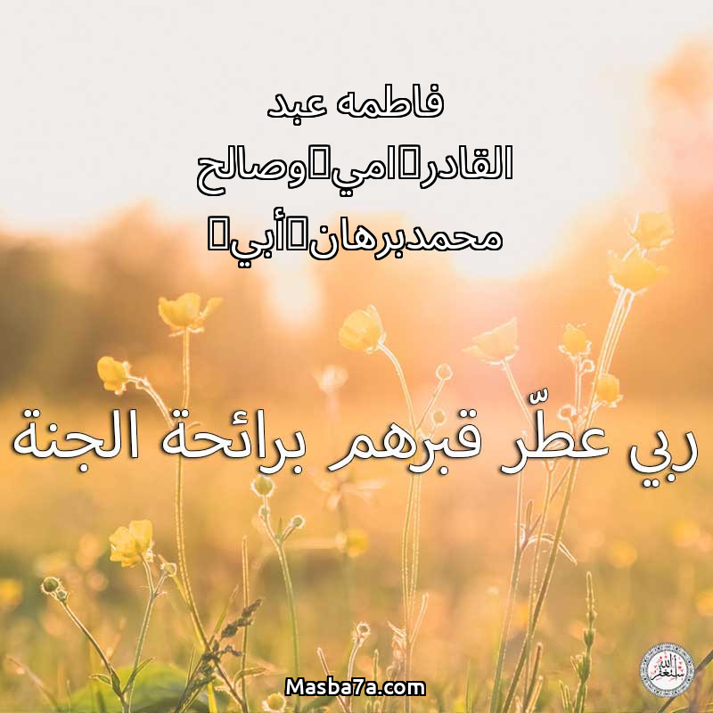 اللهم ارحم ( فاطمه عبد القادر(امي)وصالح محمدبرهان(أبي) ) وانس وحشتهم واجمعنا بهم في جنتك ، اللهم ارحمهم بقدر شوقنا لهم اللهم ارحمهم واغفر لهم.