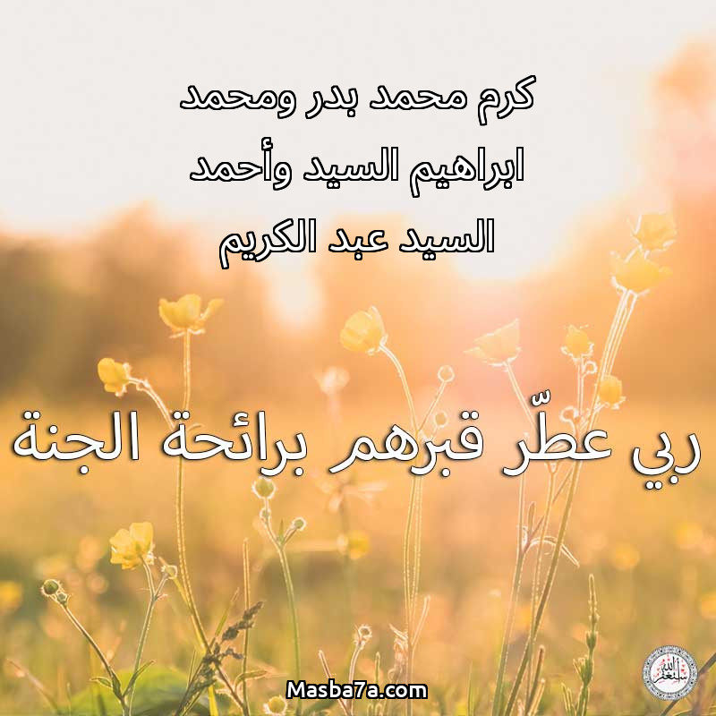 اللهم ارحم ( كرم محمد بدر ومحمد ابراهيم السيد وأحمد السيد عبد الكريم ) وانس وحشتهم واجمعنا بهم في جنتك ، اللهم ارحمهم بقدر شوقنا لهم اللهم ارحمهم واغفر لهم.