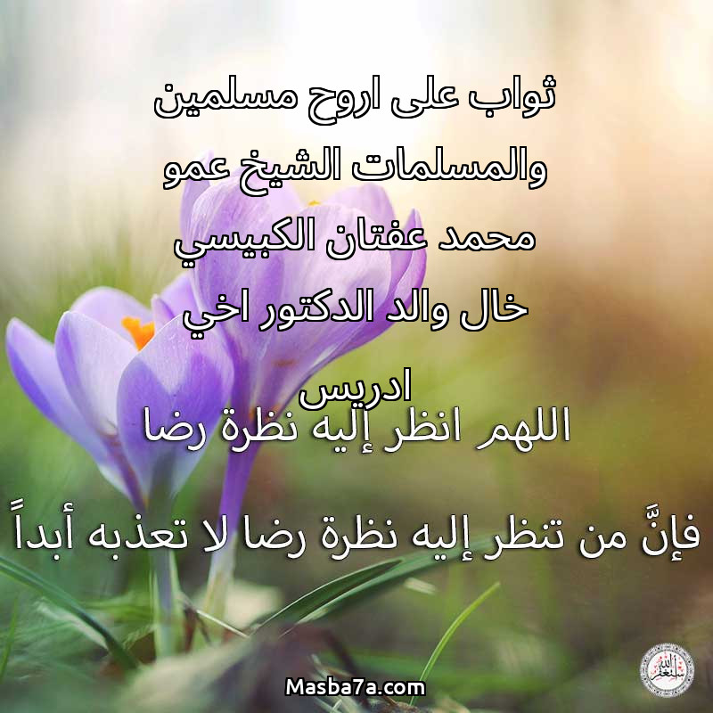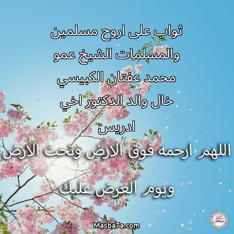 دعاء عن روح المرحوم ثواب على اروح مسلمين والمسلمات الشيخ عمو محمد عفتان الكبيسي خال والد الدكتور اخي ادريس