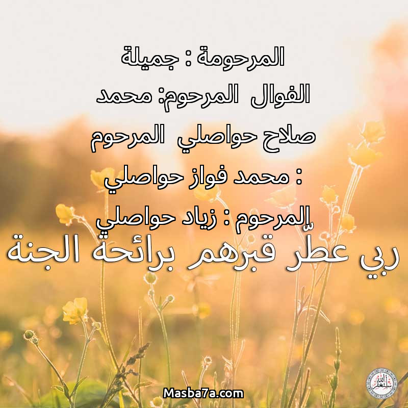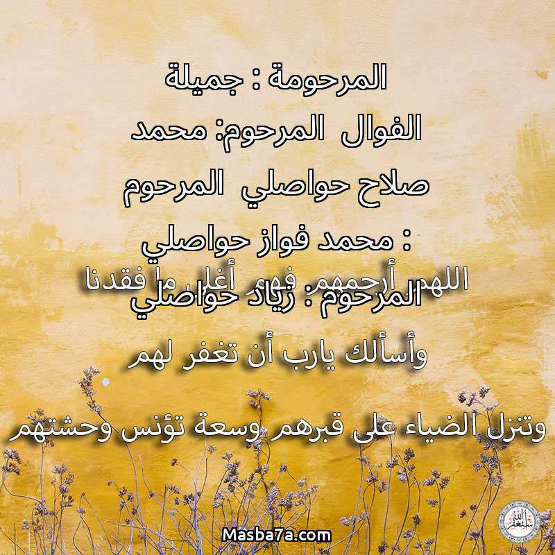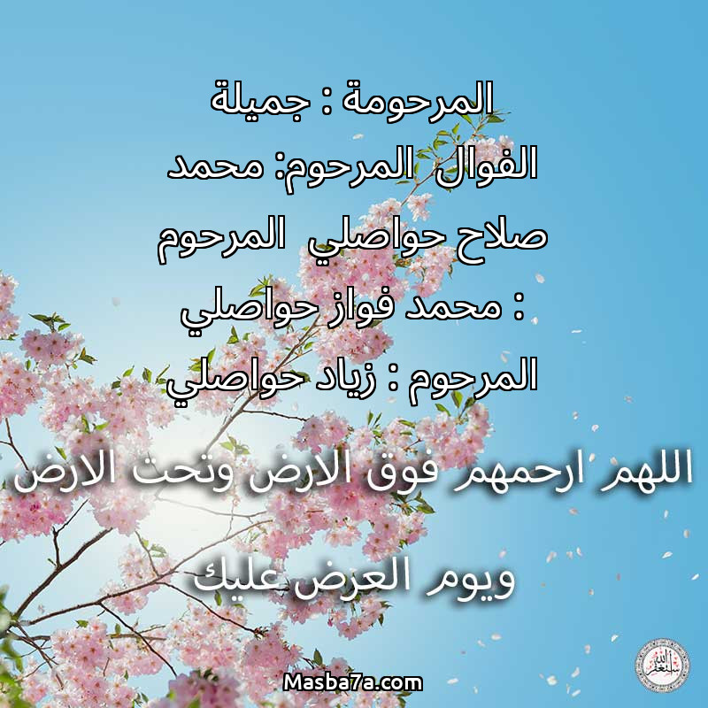 دعاء عن أرواح المرحومين المرحومة : جميلة الفوال المرحوم: محمد صلاح حواصلي المرحوم : محمد فواز حواصلي المرحوم : زياد حواصلي