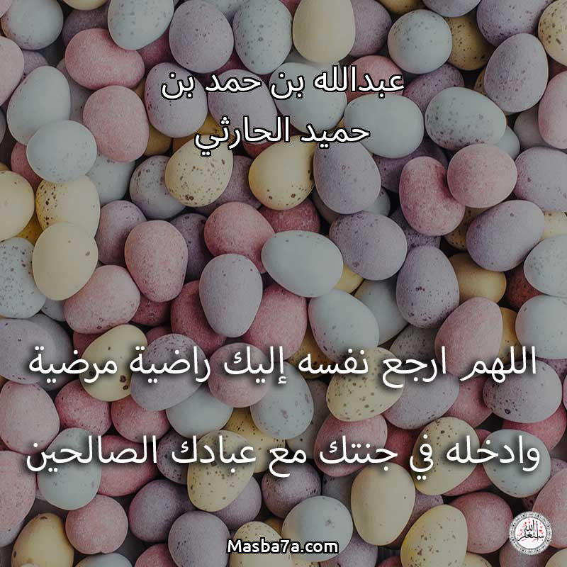 اللهم ارحم ( عبدالله بن حمد بن حميد الحارثي ) وانس وحشته واجمعنا به في جنتك ، اللهم ارحمه بقدر شوقنا له اللهم ارحمه واغفر له .