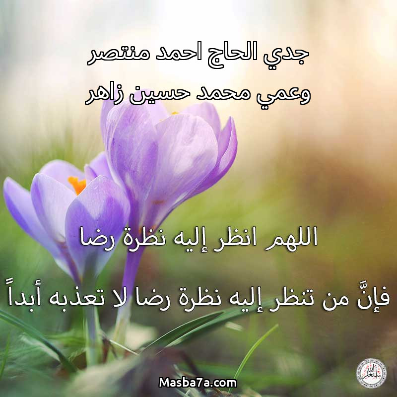اللهم ارحم ( جدي الحاج احمد منتصر وعمي محمد حسين زاهر ) وانس وحشته واجمعنا به في جنتك ، اللهم ارحمه بقدر شوقنا له اللهم ارحمه واغفر له .