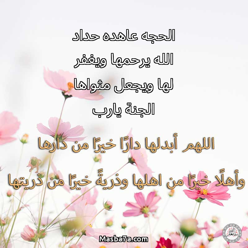 دعاء عن روح المرحومة الحجه عاهده حداد الله يرحمها ويغفر لها ويجعل مثواها الجنة يارب