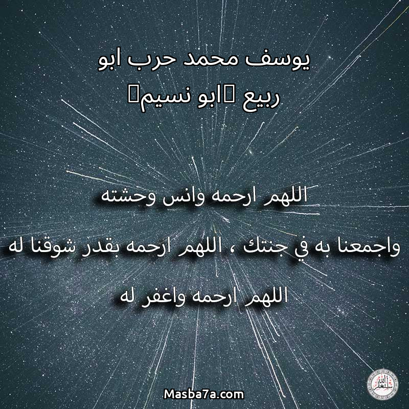 اللهم ارحم ( يوسف محمد حرب ابو ربيع (ابو نسيم) ) وانس وحشته واجمعنا به في جنتك ، اللهم ارحمه بقدر شوقنا له اللهم ارحمه واغفر له .