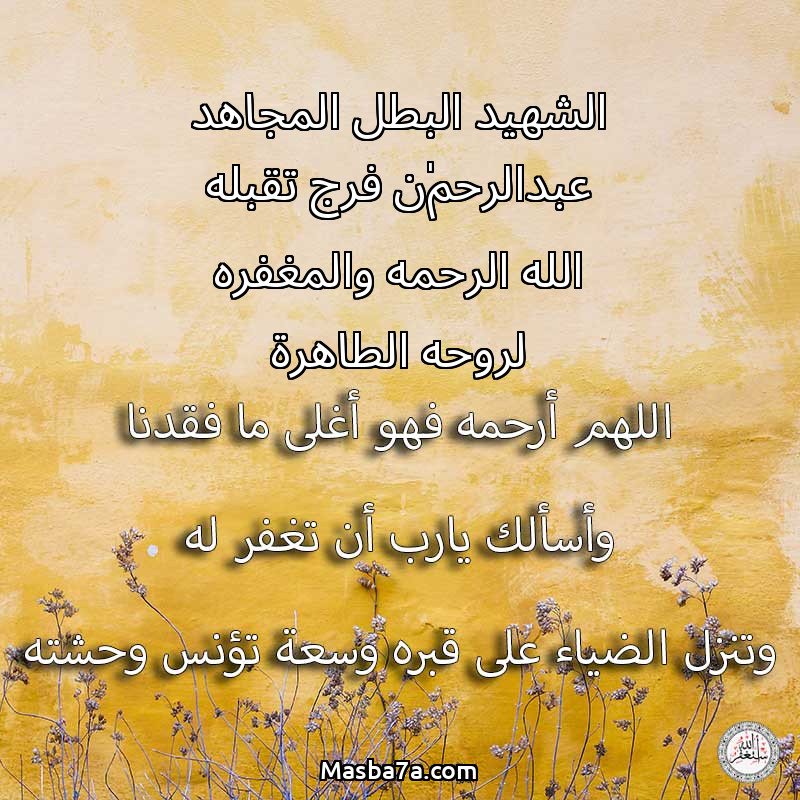 دعاء عن روح المرحوم الشهيد البطل المجاهد عبدالرحمٰن فرج تقبله الله الرحمه والمغفره لروحه الطاهرة