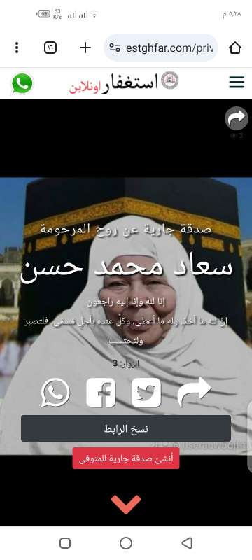 اللهم ارحم ( سعاد محمد حسن ) وانس وحشتها واجمعنا بها في جنتك ، اللهم ارحمها بقدر شوقنا لها اللهم ارحمها واغفر لها .