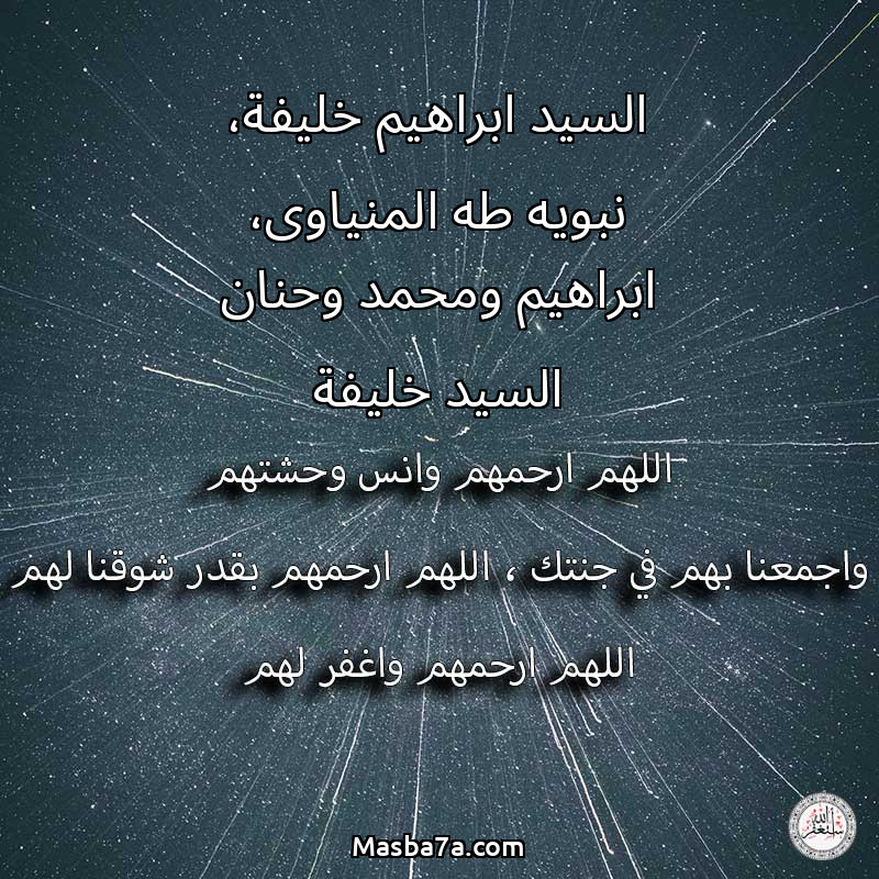 دعاء عن أرواح المرحومين السيد ابراهيم خليفة، نبويه طه المنياوى، ابراهيم ومحمد وحنان السيد خليفة