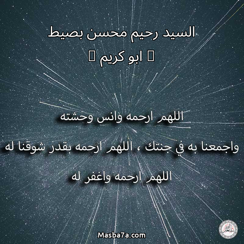 اللهم ارحم ( السيد رحيم محسن بصيط ( ابو كريم ) ) وانس وحشته واجمعنا به في جنتك ، اللهم ارحمه بقدر شوقنا له اللهم ارحمه واغفر له .
