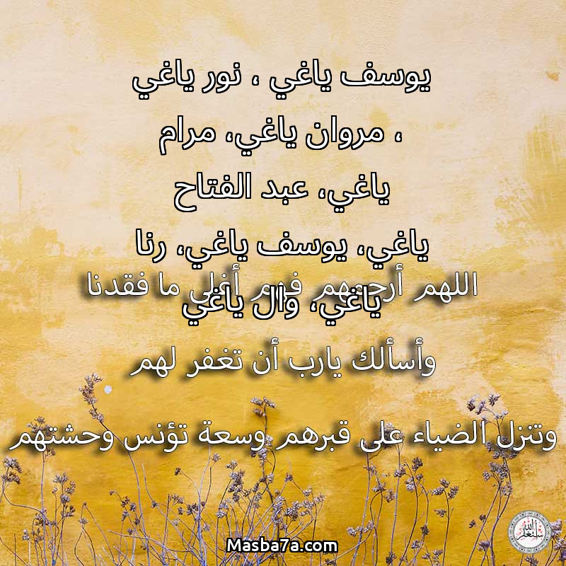 دعاء عن أرواح المرحومين يوسف ياغي ، نور ياغي ، مروان ياغي، مرام ياغي، عبد الفتاح ياغي، يوسف ياغي، رنا ياغي، وال ياغي