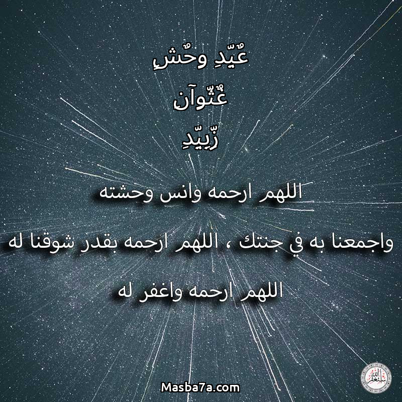 اللهم ارحم ( عٌيِّدِ وِحٌشٍ غٌثّوِآنِ زِّبِيِّدِ ) وانس وحشته واجمعنا به في جنتك ، اللهم ارحمه بقدر شوقنا له اللهم ارحمه واغفر له .