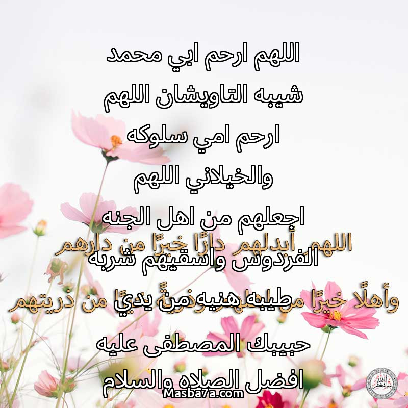 دعاء عن أرواح المرحومين اللهم ارحم ابي محمد شيبه التاويشان اللهم ارحم امي سلوكه والخيلاني اللهم اجعلهم من اهل الجنه الفردوس واسقيهم شربه طيبه هنيه من يدي حبيبك المصطفى عليه افضل الصلاه والسلام