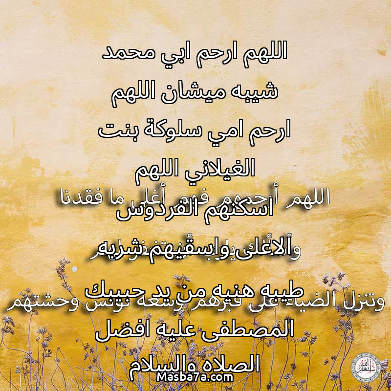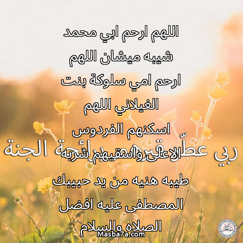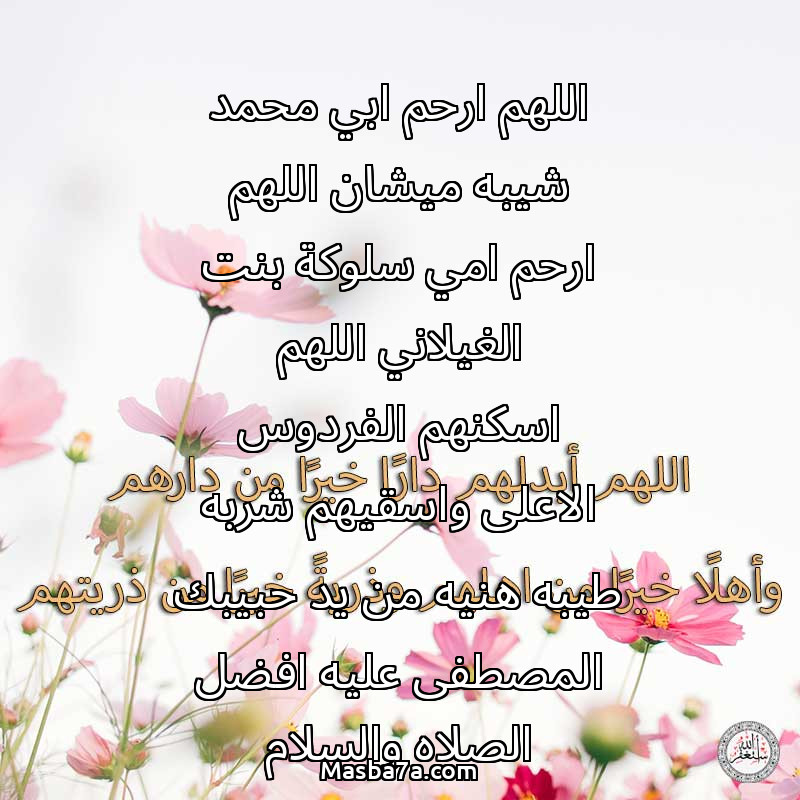 دعاء عن أرواح المرحومين اللهم ارحم ابي محمد شيبه ميشان اللهم ارحم امي سلوكة بنت الغيلاني اللهم اسكنهم الفردوس الاعلى واسقيهم شربه طيبه هنيه من يد حبيبك المصطفى عليه افضل الصلاه والسلام