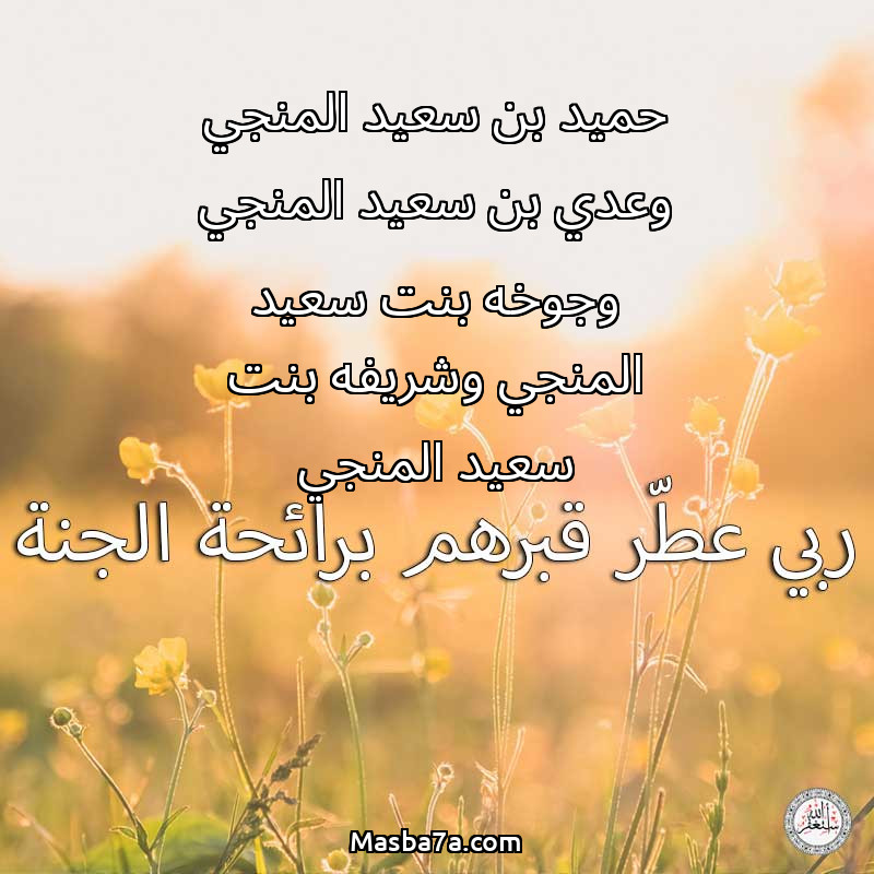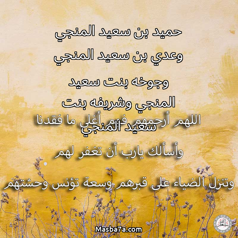 دعاء عن أرواح المرحومين حميد بن سعيد المنجي وعدي بن سعيد المنجي وجوخه بنت سعيد المنجي وشريفه بنت سعيد المنجي