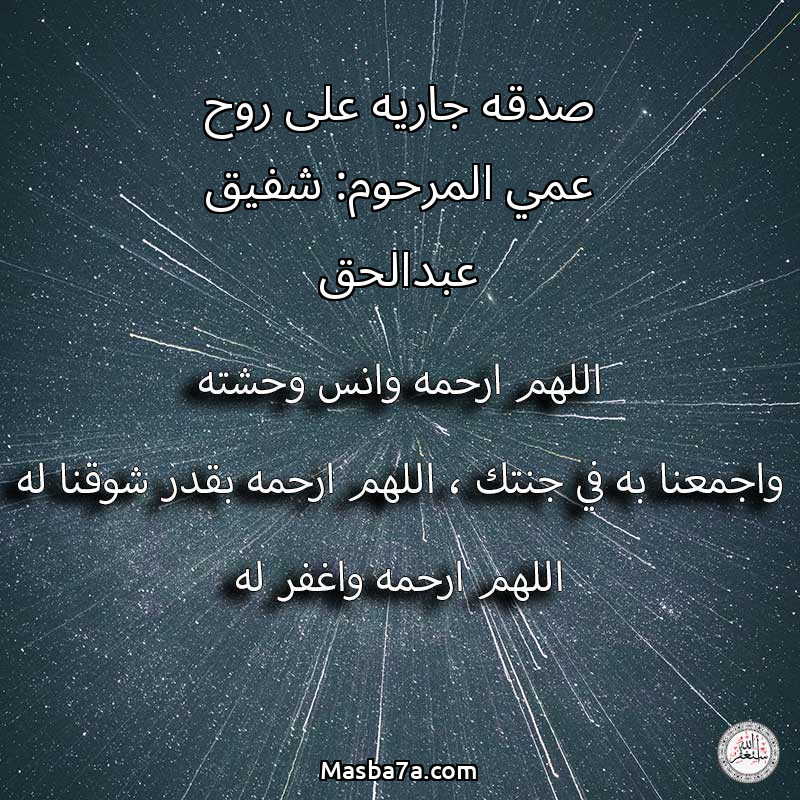 دعاء عن روح المرحوم صدقه جاريه على روح عمي المرحوم: شفيق عبدالحق