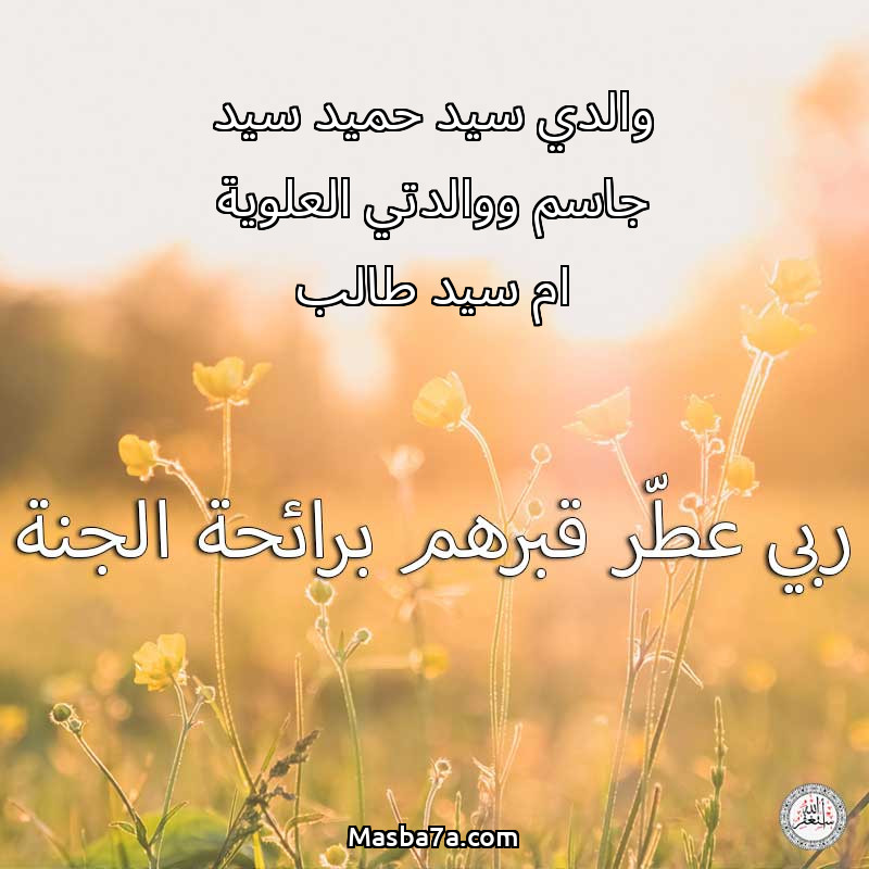 اللهم ارحم ( والدي سيد حميد سيد جاسم ووالدتي العلوية ام سيد طالب ) وانس وحشتهم واجمعنا بهم في جنتك ، اللهم ارحمهم بقدر شوقنا لهم اللهم ارحمهم واغفر لهم.