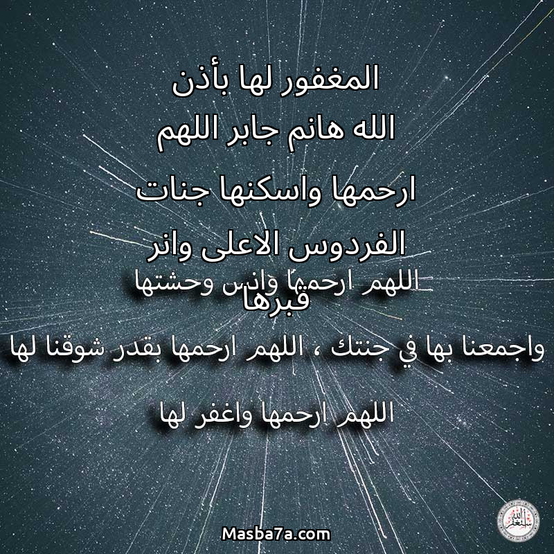 اللهم ارحم ( المغفور لها بأذن الله هانم جابر اللهم ارحمها واسكنها جنات الفردوس الاعلى وانر قبرها ) وانس وحشتها واجمعنا بها في جنتك ، اللهم ارحمها بقدر شوقنا لها اللهم ارحمها واغفر لها .
