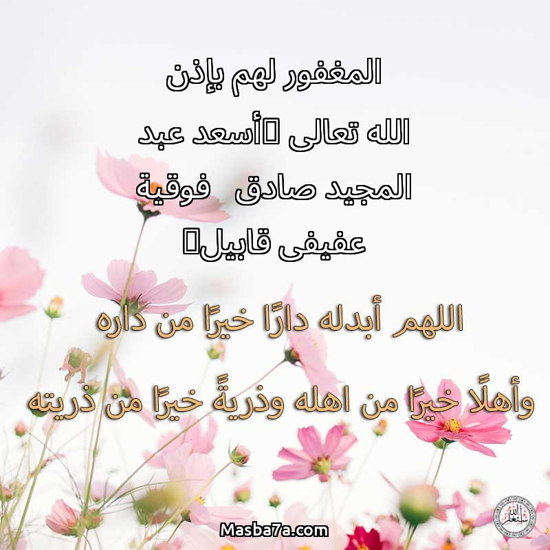 اللهم ارحم ( المغفور لهم بإذن الله تعالى (أسعد عبد المجيد صادق - فوقية عفيفى قابيل) ) وانس وحشته واجمعنا به في جنتك ، اللهم ارحمه بقدر شوقنا له اللهم ارحمه واغفر له .