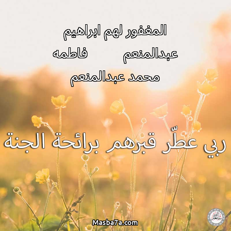 اللهم ارحم ( المغفور لهم ابراهيم عبدالمنعم فاطمه محمد عبدالمنعم ) وانس وحشتهم واجمعنا بهم في جنتك ، اللهم ارحمهم بقدر شوقنا لهم اللهم ارحمهم واغفر لهم.