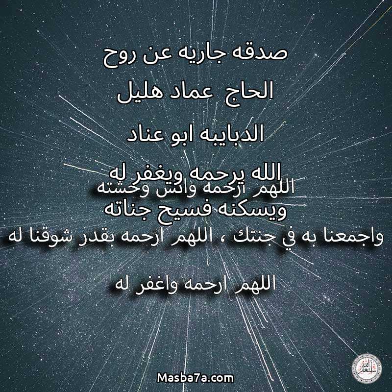 دعاء عن روح المرحوم صدقه جاريه عن روح الحاج عماد هليل الدبايبه ابو عناد الله يرحمه ويغفر له ويسكنه فسيح جناته
