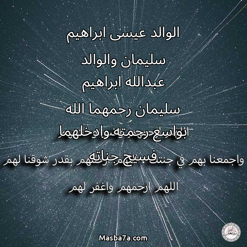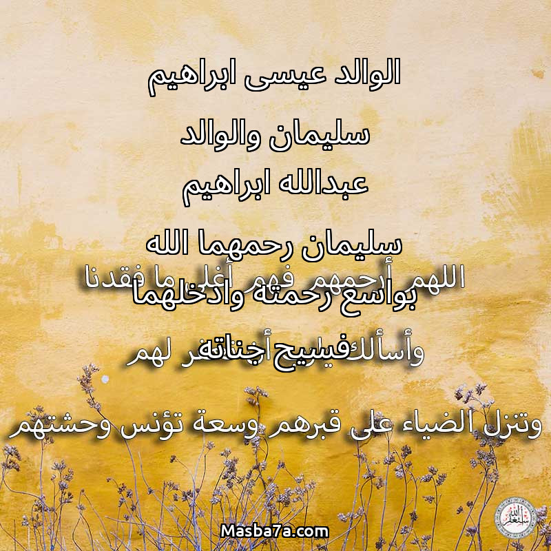 دعاء عن أرواح المرحومين الوالد عيسى ابراهيم سليمان والوالد عبدالله ابراهيم سليمان رحمهما الله بواسع رحمته وادخلهما فسيح جناته