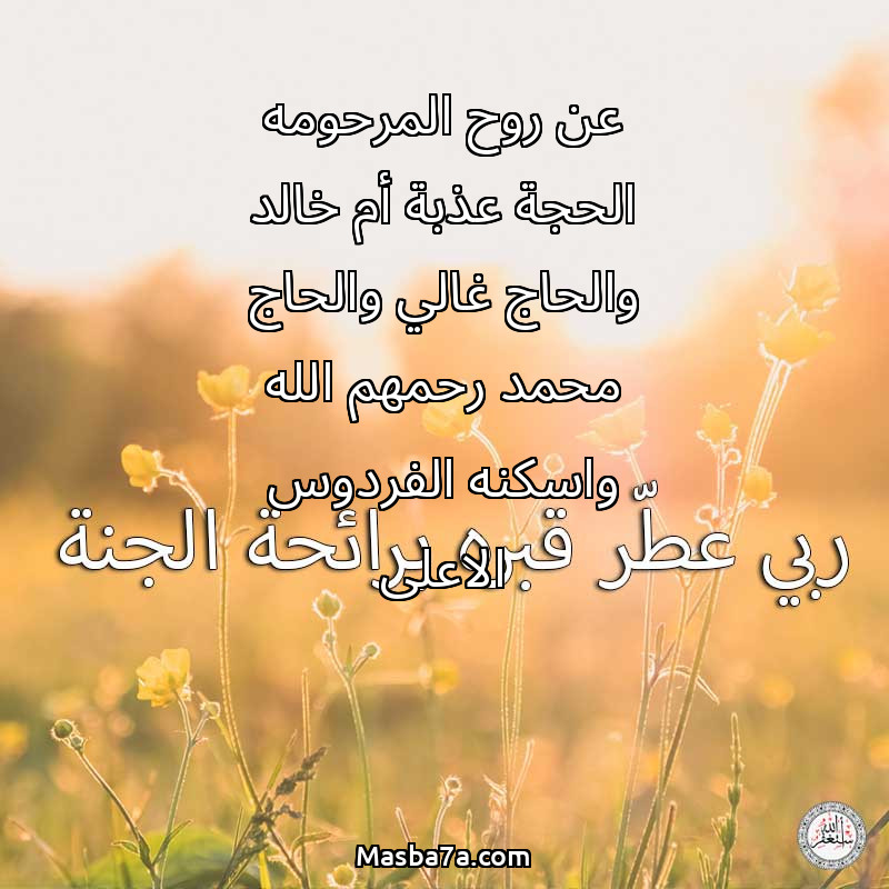 دعاء عن روح المرحوم عن روح المرحومه الحجة عذبة أم خالد والحاج غالي والحاج محمد رحمهم الله واسكنه الفردوس الاعلى
