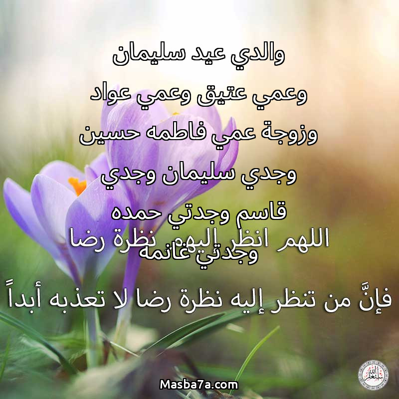 دعاء عن أرواح المرحومين والدي عيد سليمان وعمي عتيق وعمي عواد وزوجة عمي فاطمه حسين وجدي سليمان وجدي قاسم وجدتي حمده وجدتي غانمه