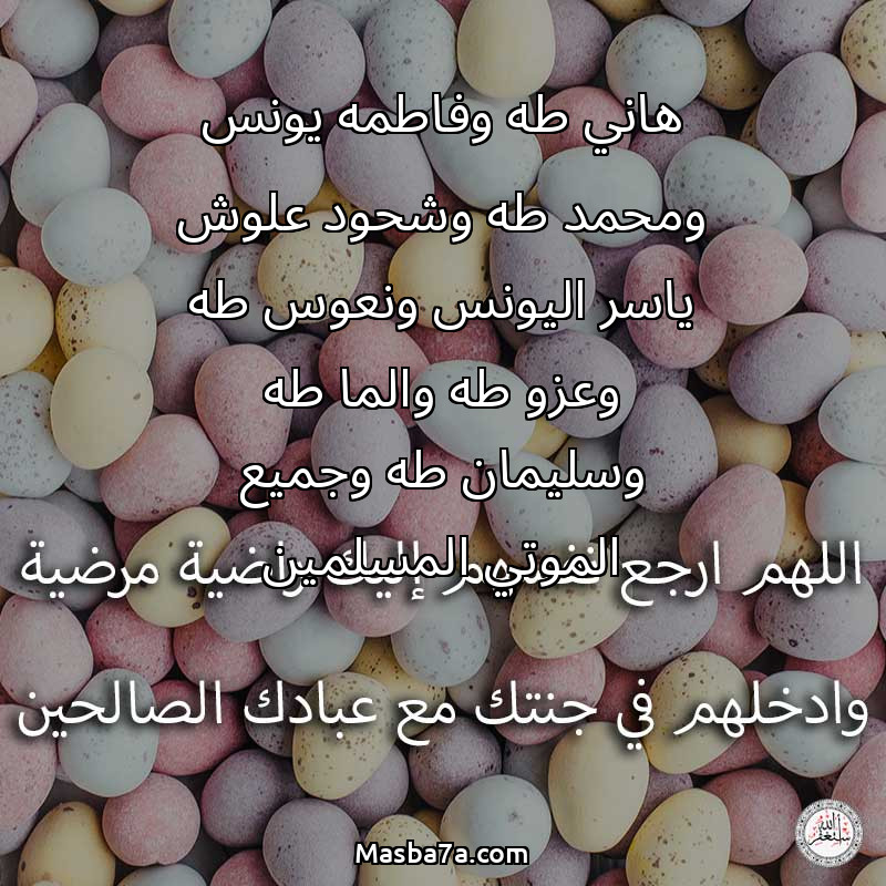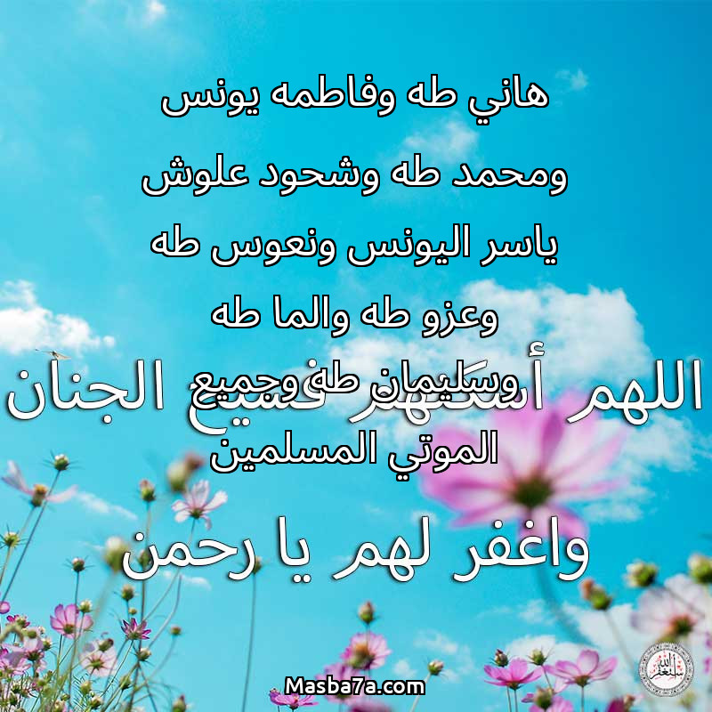دعاء عن أرواح المرحومين هاني طه وفاطمه يونس ومحمد طه وشحود علوش ياسر اليونس ونعوس طه وعزو طه والما طه وسليمان طه وجميع الموتي المسلمين