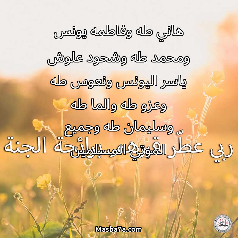 هاني طه وفاطمه يونس ومحمد طه وشحود علوش ياسر اليونس ونعوس طه وعزو طه والما طه وسليمان طه وجميع الموتي المسلمين