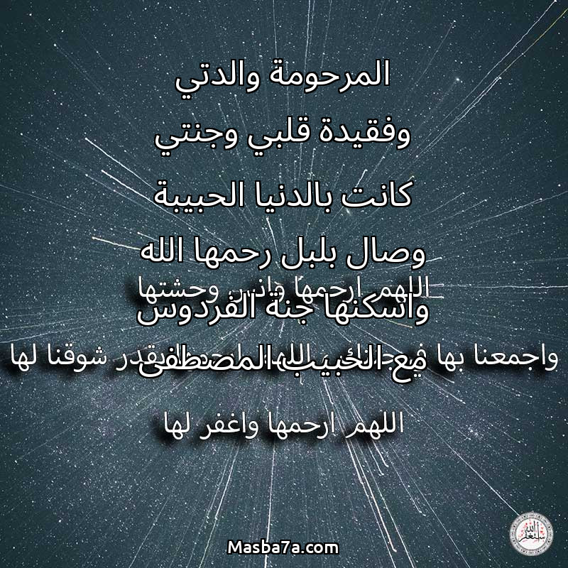 دعاء عن روح المرحومة المرحومة والدتي وفقيدة قلبي وجنتي كانت بالدنيا الحبيبة وصال بلبل رحمها الله واسكنها جنة الفردوس مع الحبيب المصطفى
