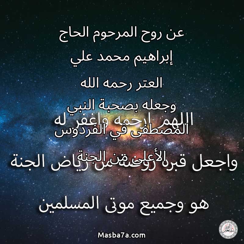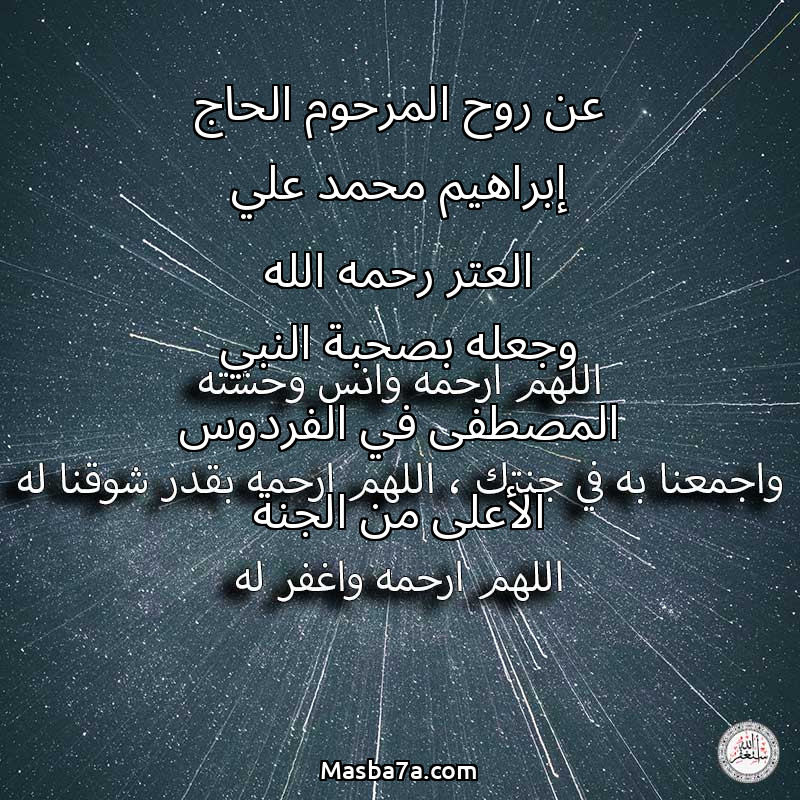 دعاء عن روح المرحوم عن روح المرحوم الحاج إبراهيم محمد علي العتر رحمه الله وجعله بصحبة النبي المصطفى في الفردوس الأعلى من الجنة