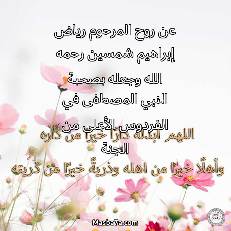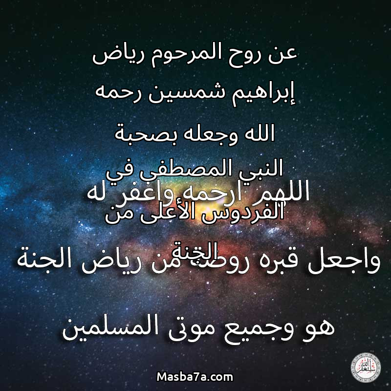 دعاء عن روح المرحوم عن روح المرحوم رياض إبراهيم شمسين رحمه الله وجعله بصحبة النبي المصطفى في الفردوس الأعلى من الجنة