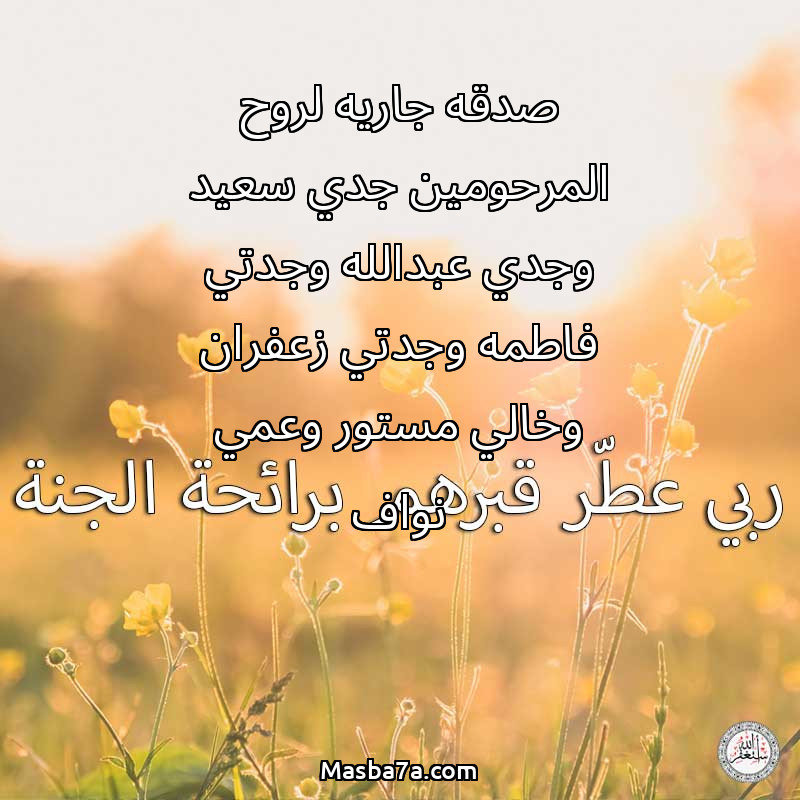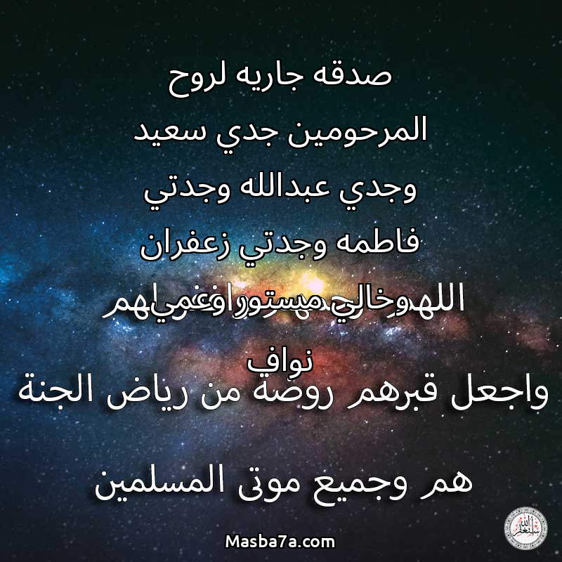 دعاء عن أرواح المرحومين صدقه جاريه لروح المرحومين جدي سعيد وجدي عبدالله وجدتي فاطمه وجدتي زعفران وخالي مستور وعمي نواف