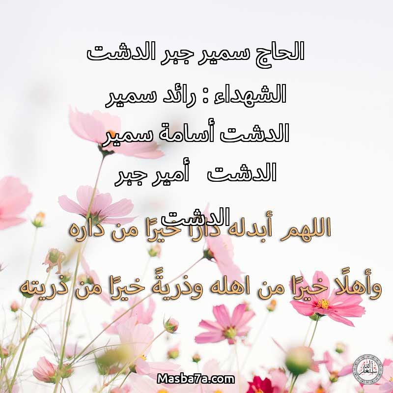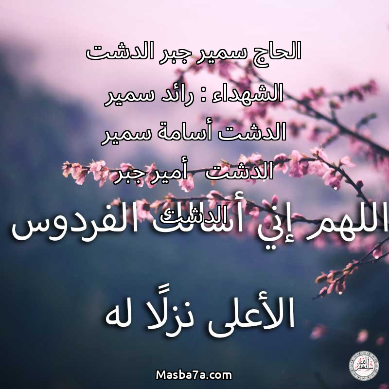دعاء عن روح المرحوم الحاج سمير جبر الدشت الشهداء : رائد سمير الدشت أسامة سمير الدشت أمير جبر الدشت