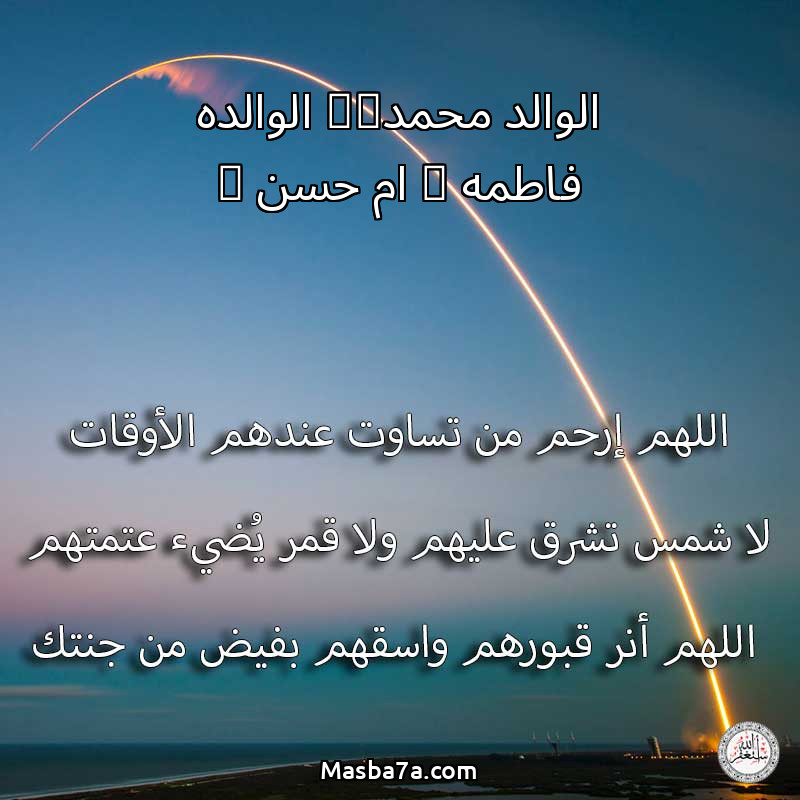 اللهم ارحم ( الوالد محمد & الوالده فاطمه ( ام حسن ) ) وانس وحشتهم واجمعنا بهم في جنتك ، اللهم ارحمهم بقدر شوقنا لهم اللهم ارحمهم واغفر لهم.