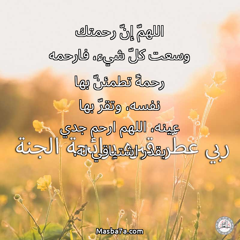 دعاء عن روح المرحوم اللهمّ إنّ رحمتك وسعت كلّ شيء، فارحمه رحمةً تطمئنّ بها نفسه، وتقرّ بها عينه، اللهم ارحم جدي بقدر اشتياقي له.