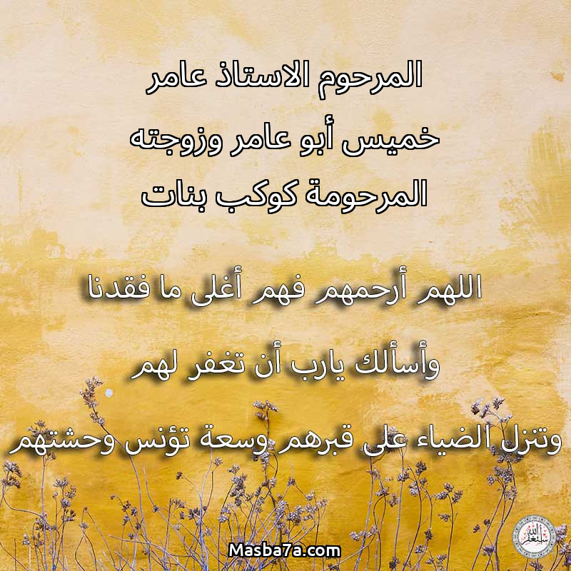 دعاء عن أرواح المرحومين المرحوم الاستاذ عامر خميس أبو عامر وزوجته المرحومة كوكب بنات