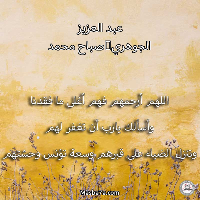اللهم ارحم ( عبد العزيز الجوهري_صباح محمد ) وانس وحشتهم واجمعنا بهم في جنتك ، اللهم ارحمهم بقدر شوقنا لهم اللهم ارحمهم واغفر لهم.