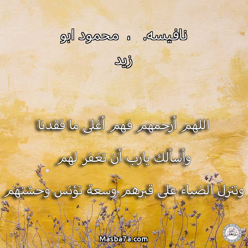 اللهم ارحم ( نافيسه. ، محمود ابو زيد ) وانس وحشتهم واجمعنا بهم في جنتك ، اللهم ارحمهم بقدر شوقنا لهم اللهم ارحمهم واغفر لهم.