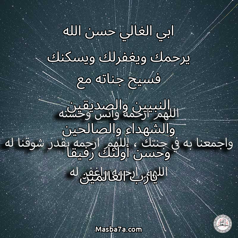 دعاء عن روح المرحوم ابي الغالي حسن الله يرحمك ويغفرلك ويسكنك فسيح جناته مع النبيين والصديقين والشهداء والصالحين وحسن أولئك رفيقا يارب العالمين