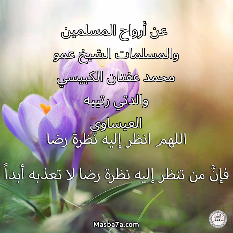 دعاء عن روح المرحوم عن أرواح المسلمين والمسلمات الشيخ عمو محمد عفتان الكبيسي والدتي رتيبه العيساوي