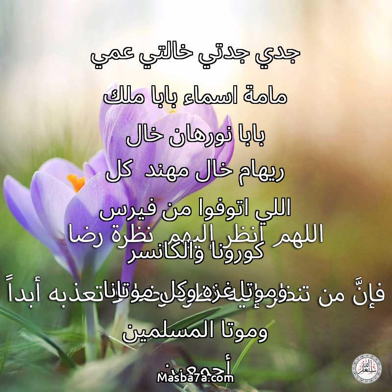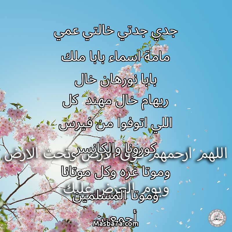 دعاء عن أرواح المرحومين جدي جدتي خالتي عمي مامة اسماء بابا ملك بابا نورهان خال ريهام خال مهند كل اللي اتوفوا من فيرس كورونا والكانسر وموتا غزه وكل موتانا وموتا المسلمين أجمعين