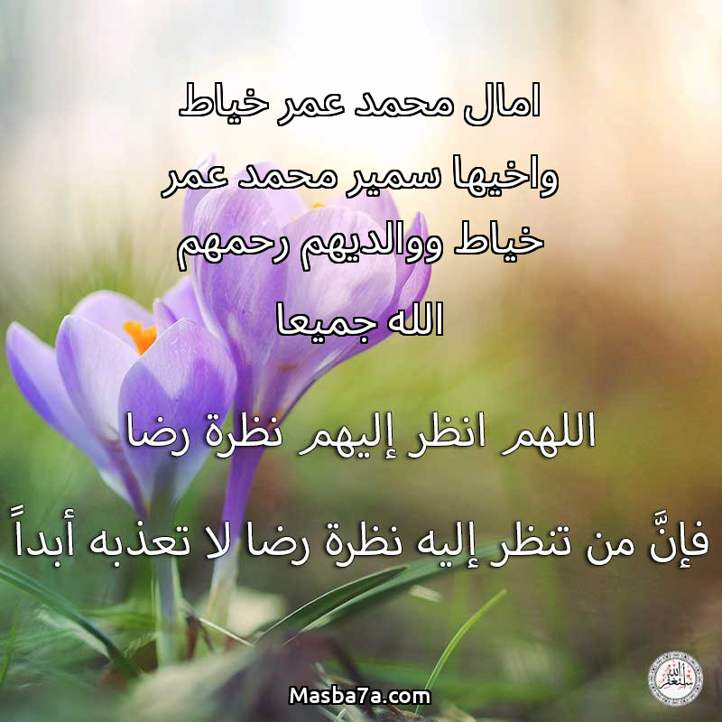 دعاء عن أرواح المرحومين امال محمد عمر خياط واخيها سمير محمد عمر خياط ووالديهم رحمهم الله جميعا