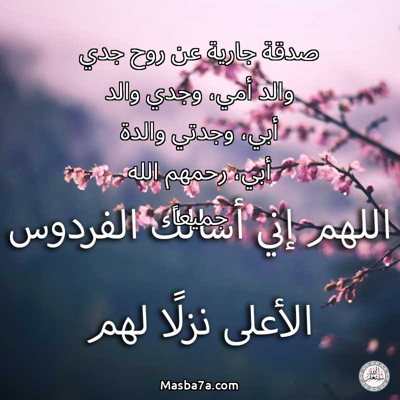 دعاء عن أرواح المرحومين صدقة جارية عن روح جدي والد أمي، وجدي والد أبي، وجدتي والدة أبي، رحمهم الله جميعاً